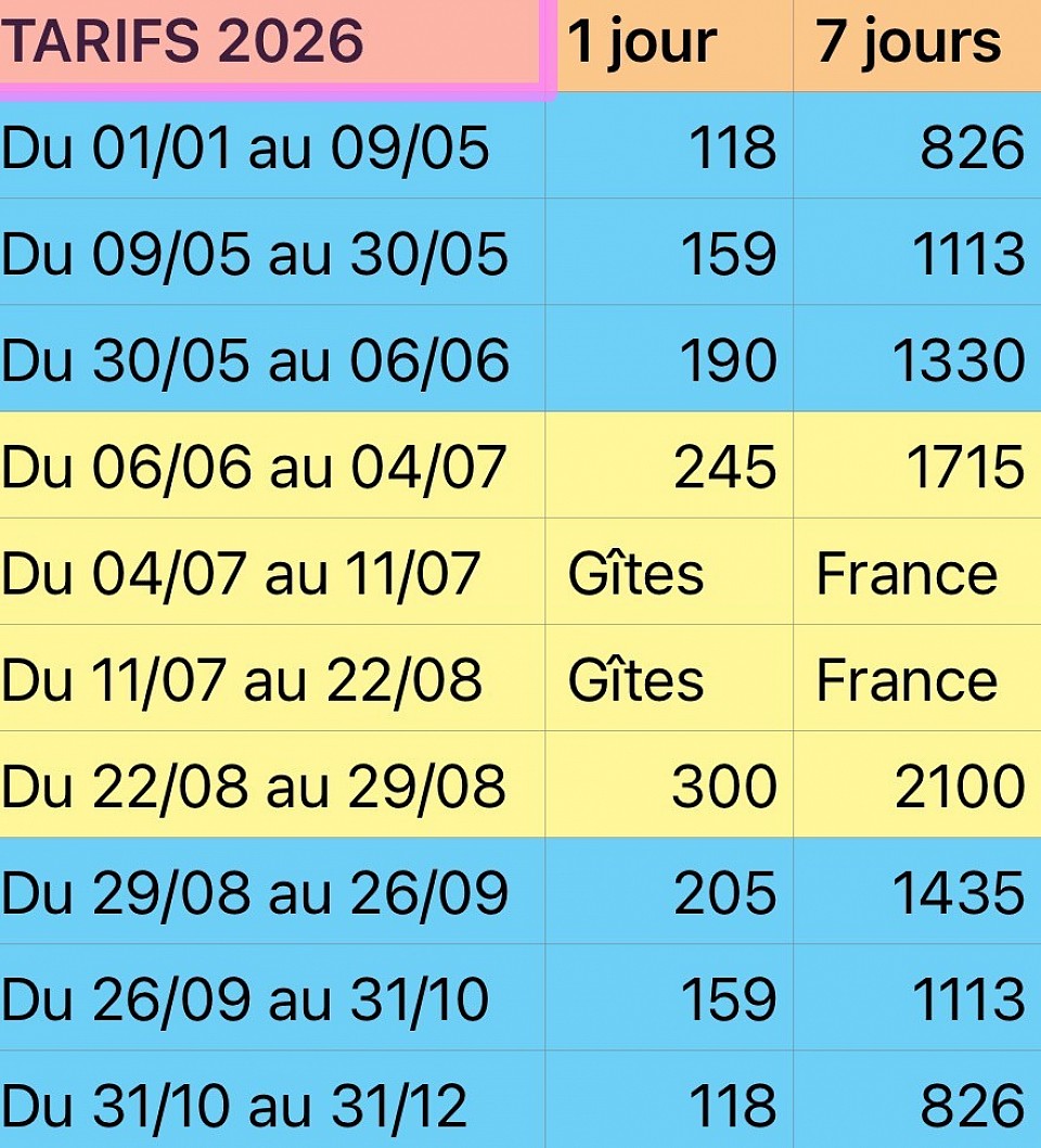 - En haute saison,🟨 les séjours se font obligatoirement du samedi au samedi.